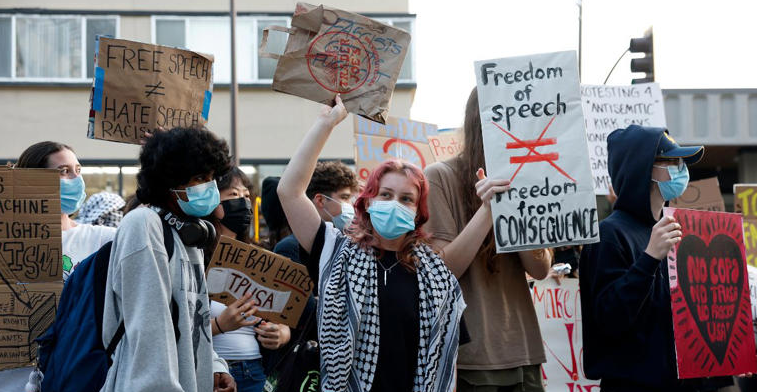 On Nov. 10, 2025, protests outside a sold-out Turning Point USA event at UC Berkeley’s Zellerbach Hall devolved into violence,